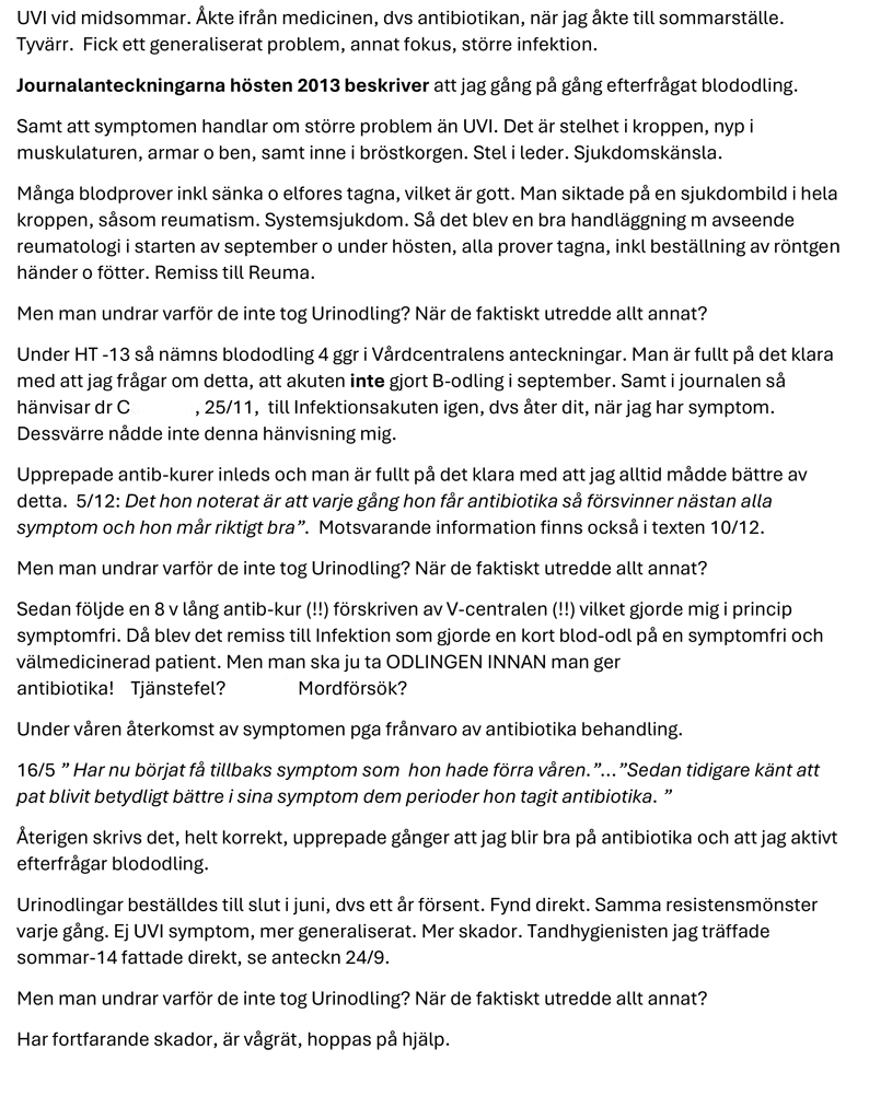 Summering av journalanteckningarna under 2013-försommaren 2014