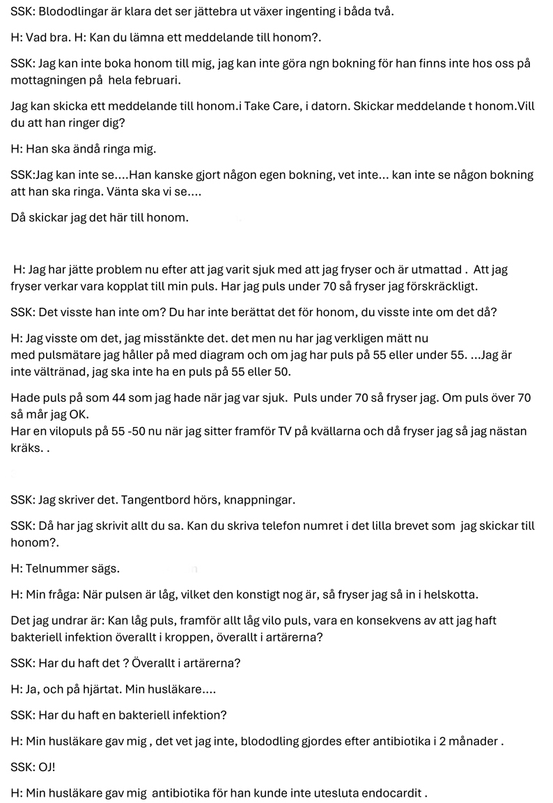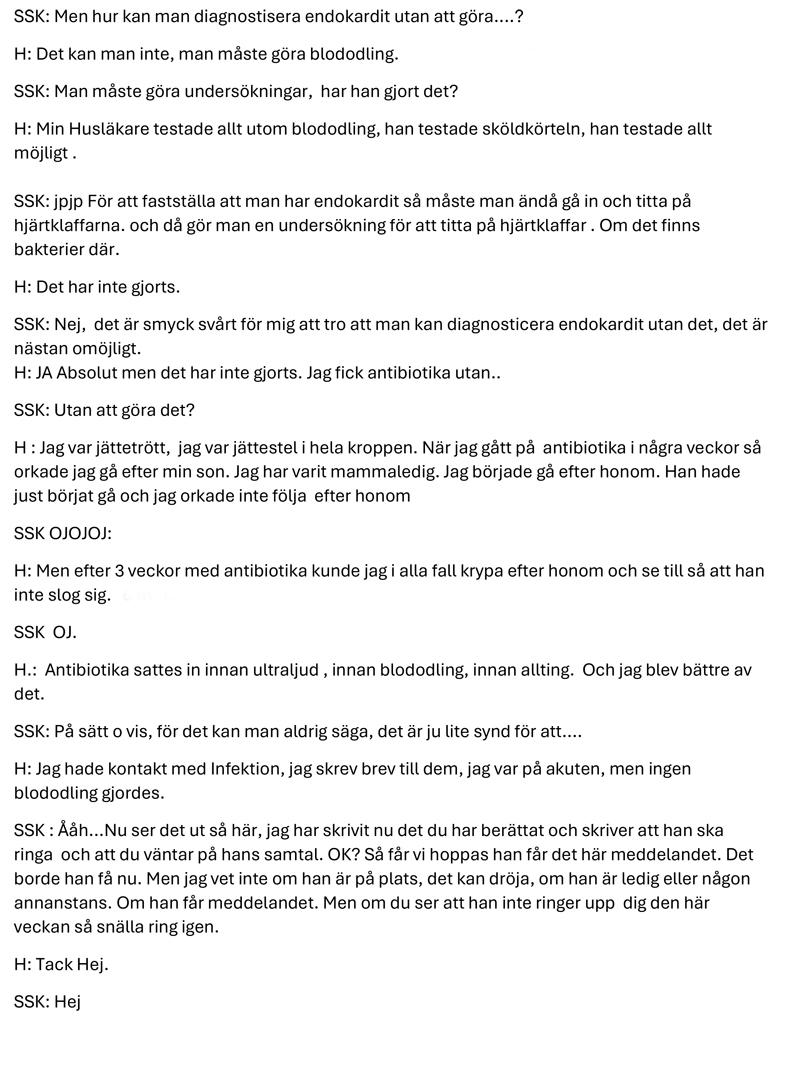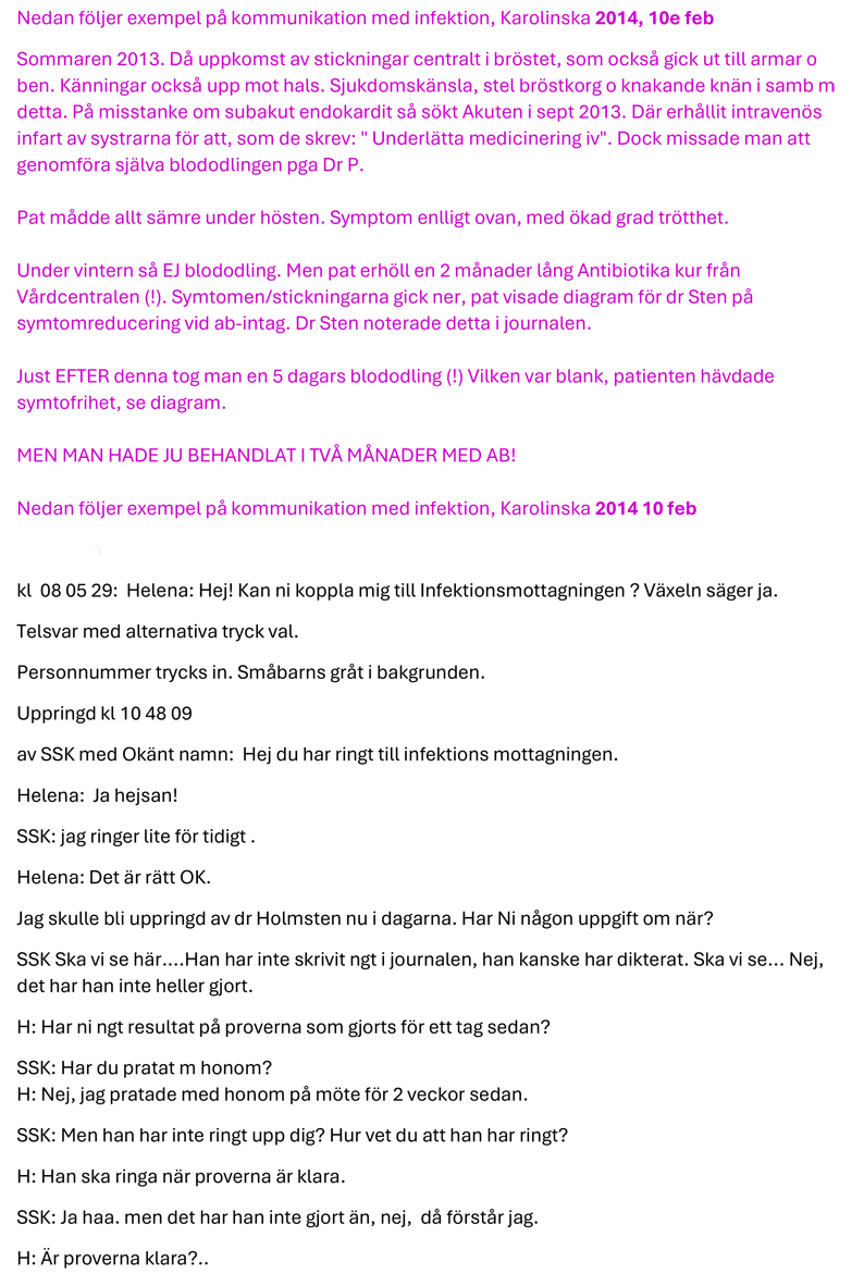 Svart text = Dialog med syster på infektion. Lila text = Bakgrund
